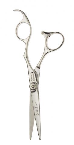 Ergonomicky tvarovaná rukojeť umožňuje držet nůžky všemi prsty a tím usnadňuje stříhání, opěrka prstu zajišťuje komfortní držení nůžek, středový regulovatelný šroub umožňuje vlastní nastavení chodu, broušené diamantem, obě ostří honována, vynikající pro klouzavý střih, komfortní doraz.